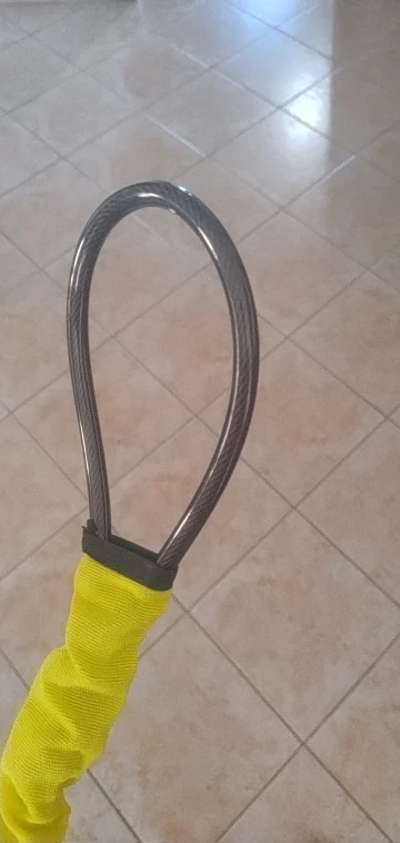β€’ Braided steel cable with PVC coating resists cutting and rust